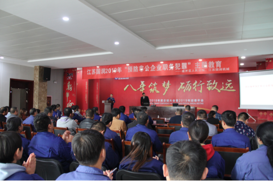 2019年11月15日,由國潤機械組織的“預防非公企業職務犯罪”主題教育講座,在江蘇國潤機械制造有限公司多功能報告廳舉行。 徐州市經開區人民法院院長劉偉、執行局局長謝龍…...